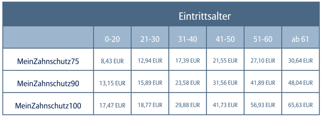 Die gewählten Tarife MeinZahnschutz100/90/75 bilden keine Altersrückstellungen.